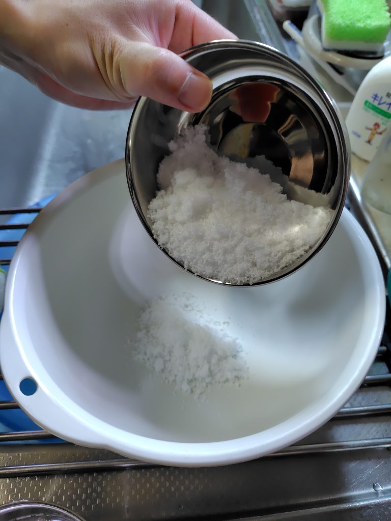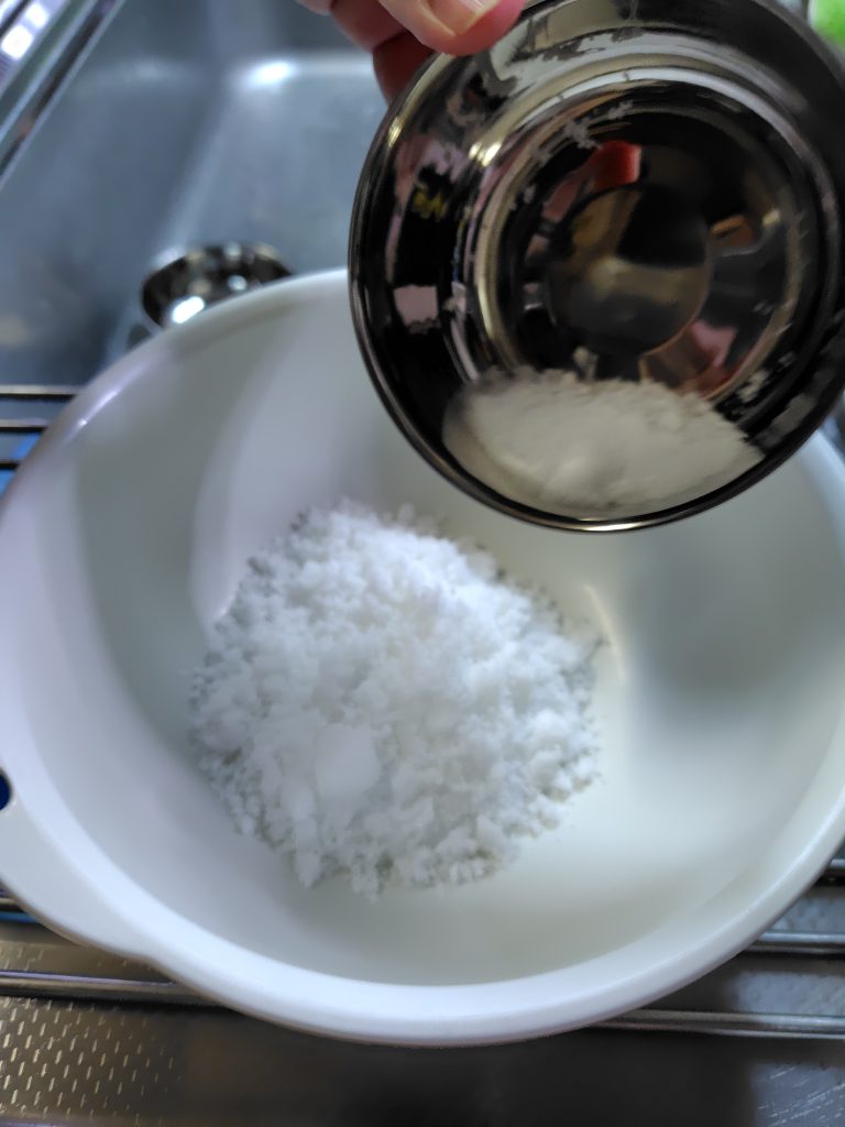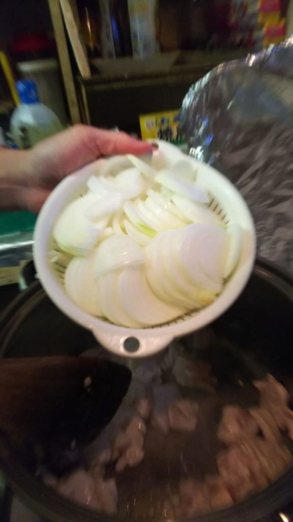 玉ネギは皮をむき芯を切り取ってから2cm幅に切る。