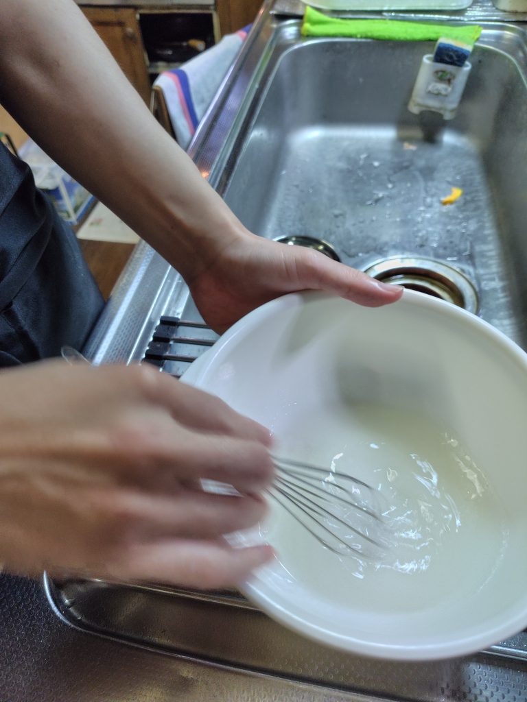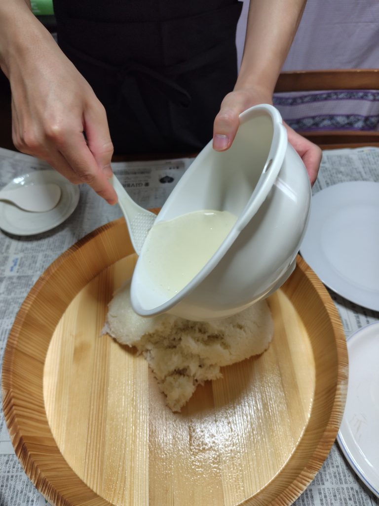 弱火でかき混ぜながら煮込む。さらに牛乳を加える。