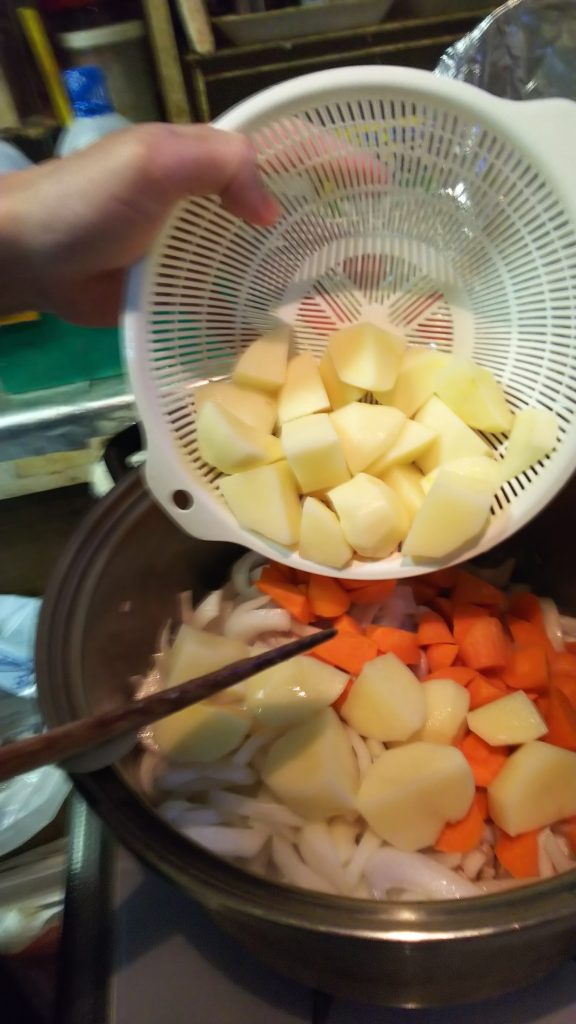 じゃがいもは皮をむいて一口大の大きさに切る。