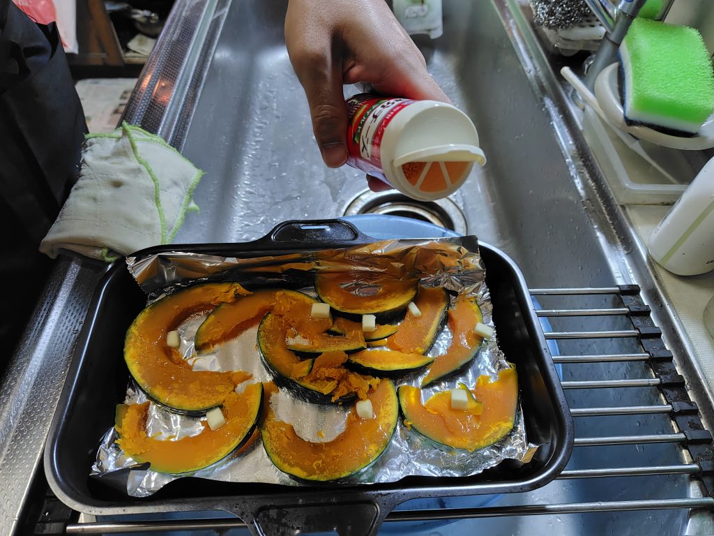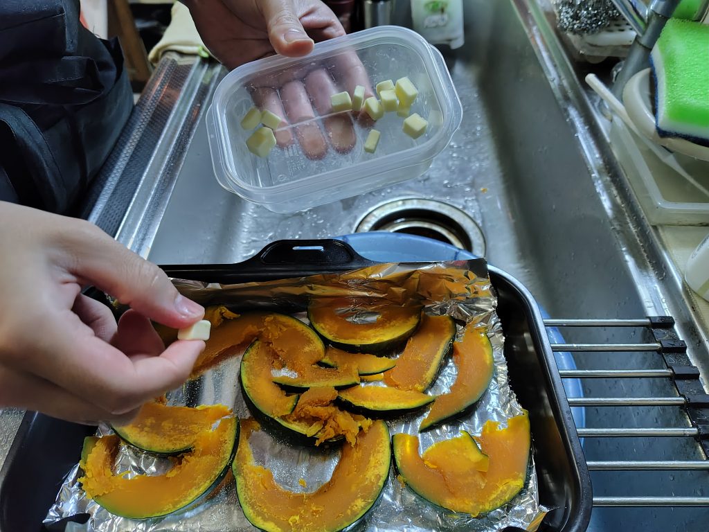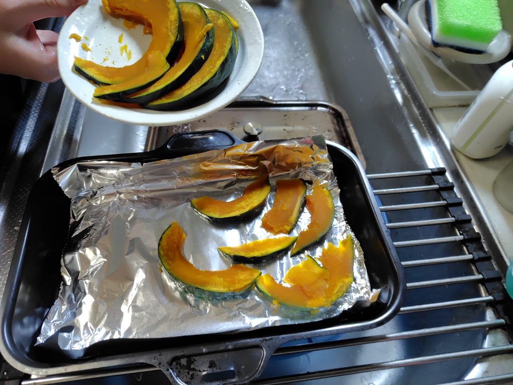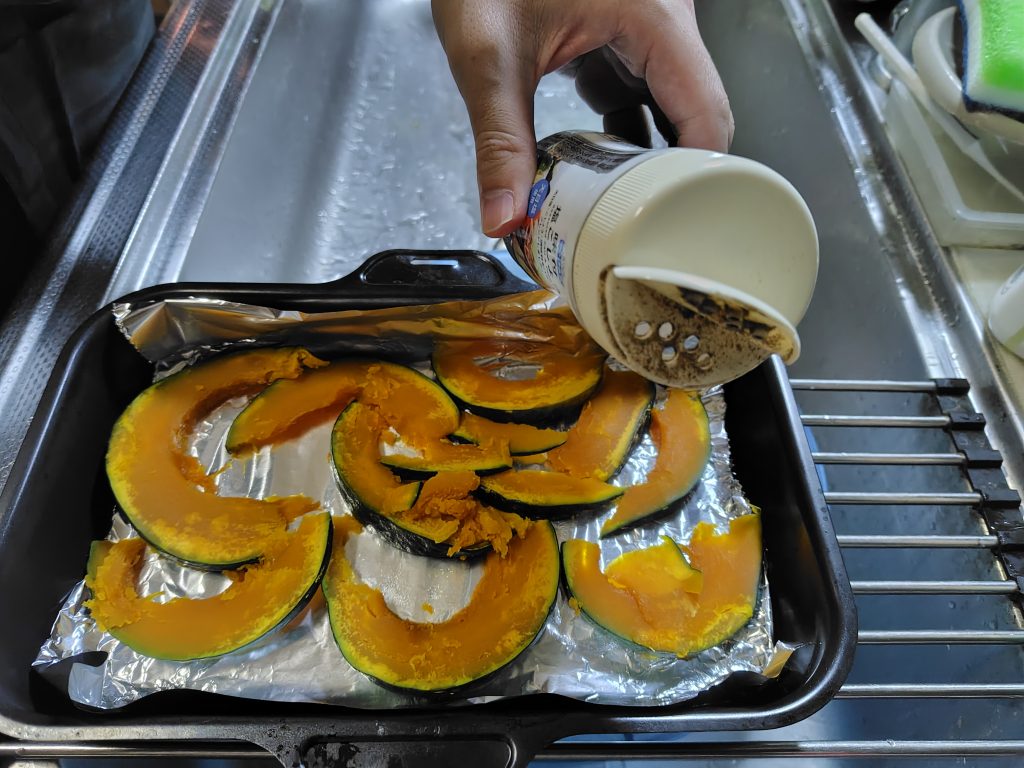 粗熱をとってから、皮つきのまま1cm幅に切る
