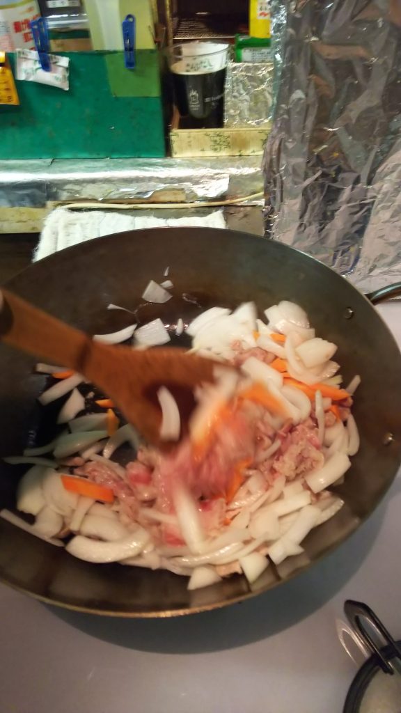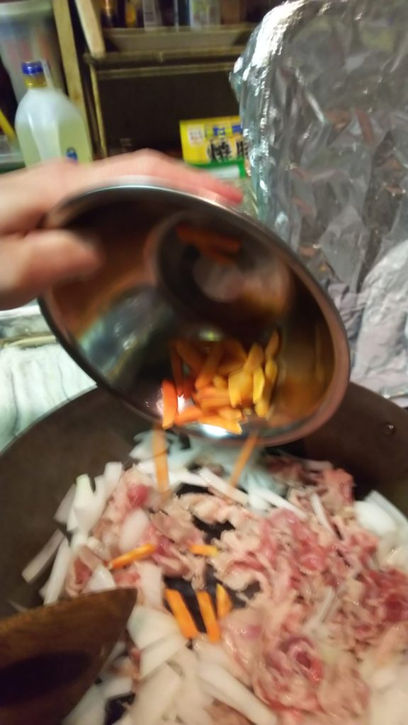 水を加えてアクを取り、具材が柔らかくなるまで15分煮込む。